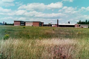 | The Alert Facilty where the crews stayed during Loring's hayday. | The Alert Facilty now. The grassy field in the foreground is where the security police dorm (my first dorm) stood. |