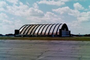 The Bomber Alert Area minus it's fence and alarm tower. The large ramp area to the left was the parking area for four B-52s and 8 KC-135 tankers. The ramp running horizontaly across the picture was the taxiway out of the area. |
