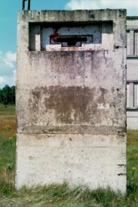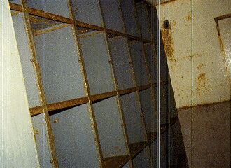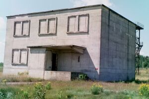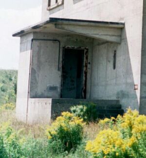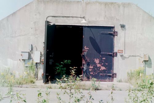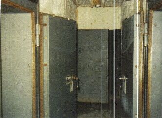 | The vault door had been welded shut when the building was sealed. After the base was closed, a team was sent to access the building to see what was inside. They had to cut through the 6 inches of steel in order to do that. Inside, (after releasing a large amount of what was thought to be radiation, later "officially" identified as radon gas) they found more vault doors. |